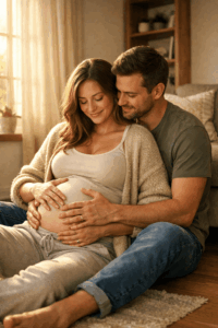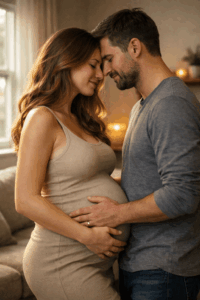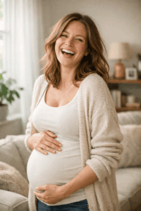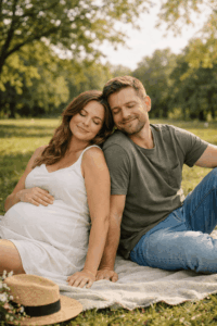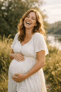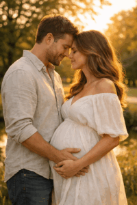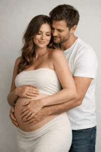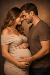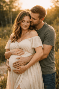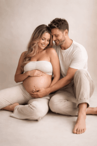 Eine der schönsten Babybauch Fotos Ideen ist es, bewusst einen Moment zu schaffen, in dem gelacht wird. Ein kleiner Witz, ein Kuss, ein kurzer Blickkontakt. Diese Fotos sind oft die emotionalsten, weil sie echt sind.