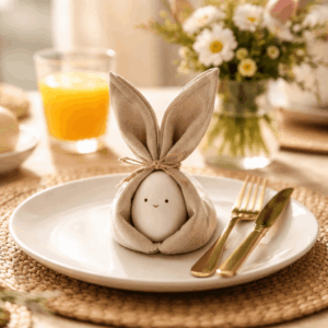 Idee 3: Servietten Hasen, die deinen Tisch sofort nach Ostern aussehen lassen